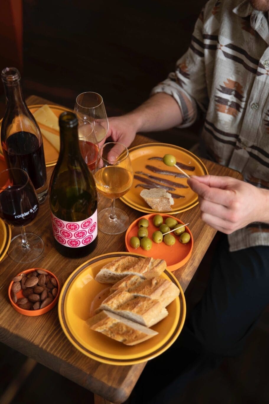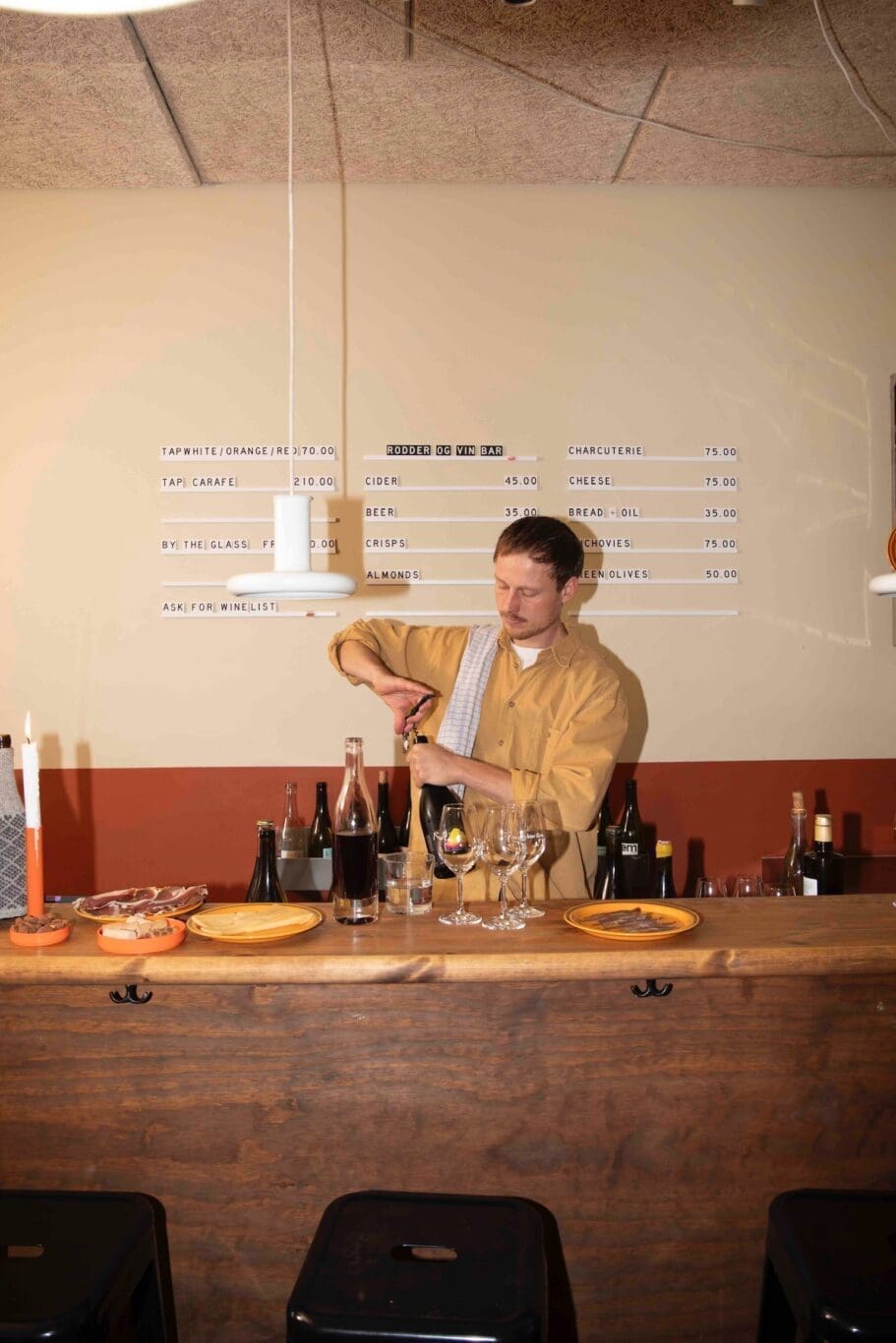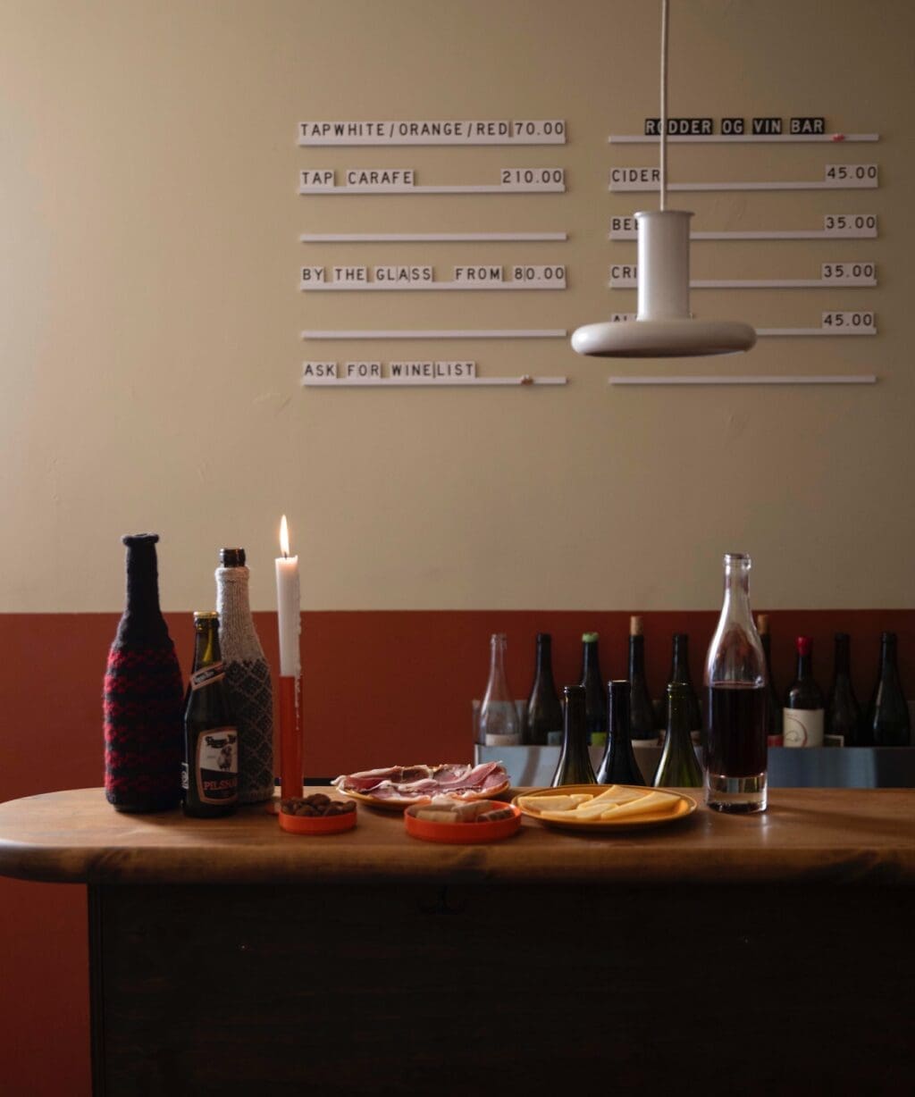 Whether you are serious about wine or just in the mood for a relaxed drink, a sommelier is always on hand to guide you through the collection, or you can dive in on your own—grab a glass from our taps or stroll around and explore our shelves of intriguing bottles. Rødder & Vin Bar brings together top-tier wines and low-key, bodega-style vibes, making it the perfect spot to sip, snack, and settle in.
